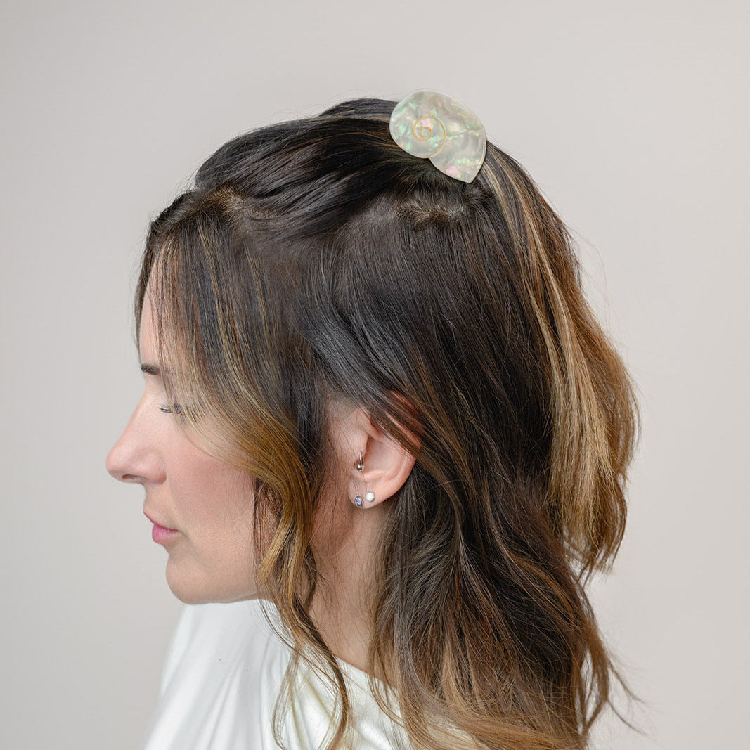 Each unique design is cut from cellulose acetate, and meticulously assembled by hand to create a durable and timeless hair claw. Form and function are carefully considered, ensuring your claw is as wearable as it is beautiful.