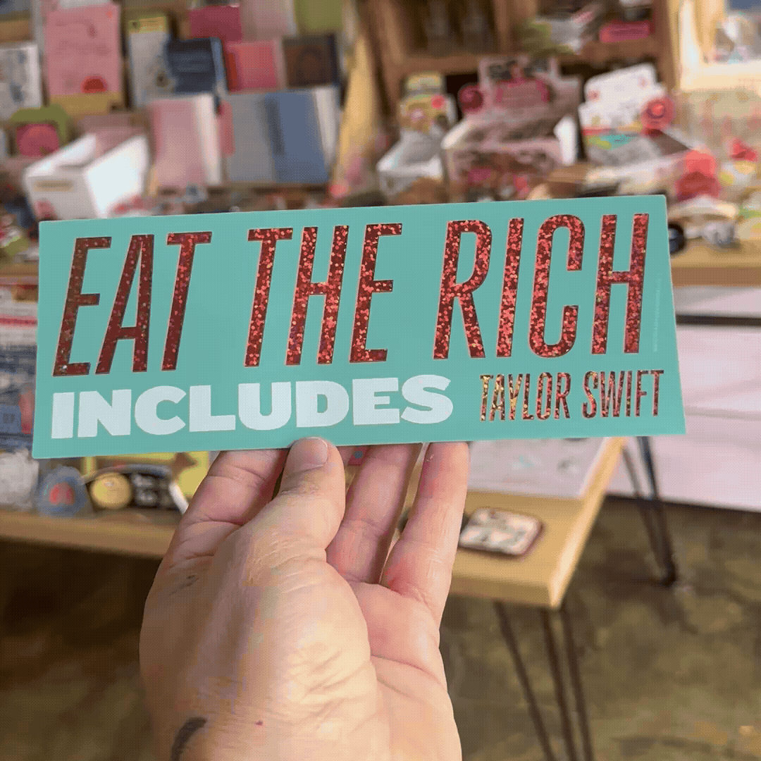 8x3" Glittery Bumper sticker to remind us all that there is no ethical billionaire.