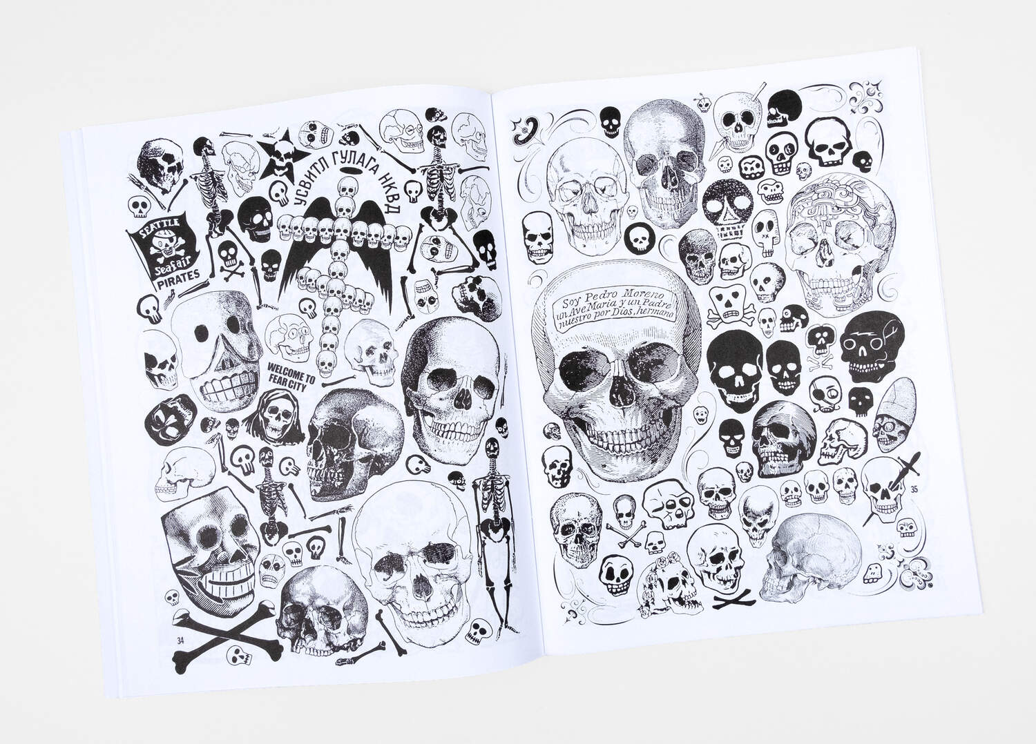 Each page of Crap Hound is a treat to the eyes. Design-types will appreciate the incredible attention to detail of tessellation, and how each page tells a story all its own. Crafty-types and Xerox-jockeys will enjoy taking scissors to its pages and refashioning their own works. Tattoo artists will revel in the iconography on each page.