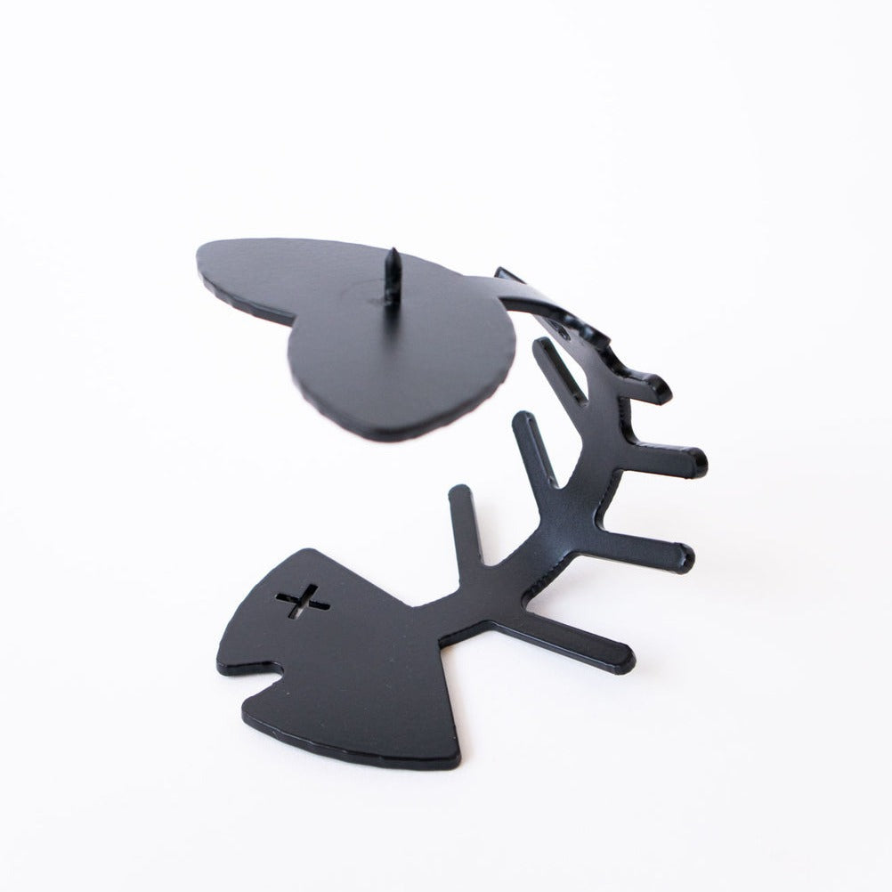 powder-coated black steel with pricket and cutout eye