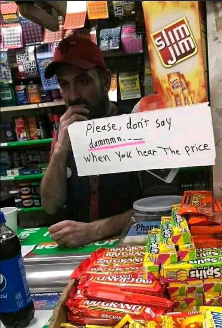 “Please dont say dammmn when you hear the price.” This one is for every small business, for every hairstylist, tattooer, vintage dealer, illustrator, graphic designer, etc. Based on a photo of a man in a bodega who had a handmade sign with these iconic words. Designed by Ben Goetting.